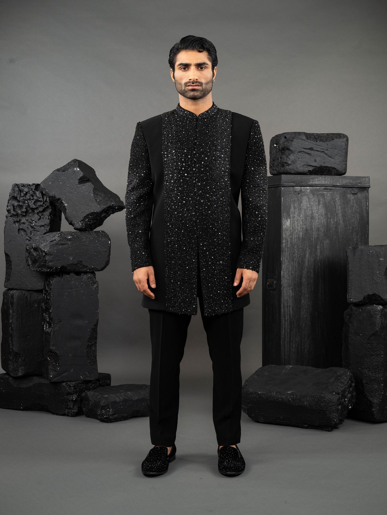 The Royal Heritage Collection, this stunning design showcases intricate metallic bead work . The perfect blend of traditional charm and Indo Western elegance.
